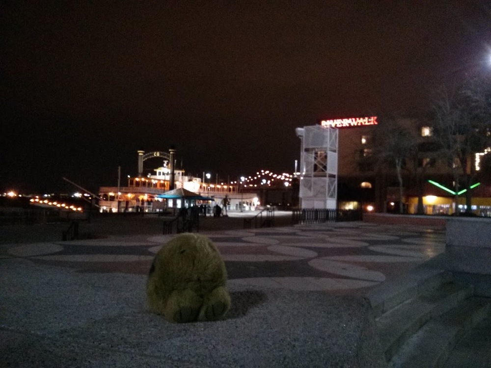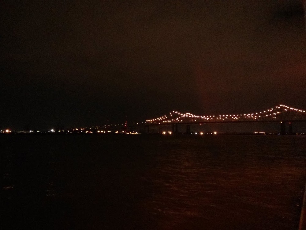 Tonight I went down to proper downtown New Orleans (it has a welcome sign and everything!) for a night time river paddleboat cruise on the allegedly famous Creole Queen paddleboat. We'll, it's at least famous enough to have a Wikipedia article. There I hoped to knock a bunch of things off my list all at once: seeing downtown, seeing the Mississippi river, eating some creole food, and getting dinner.