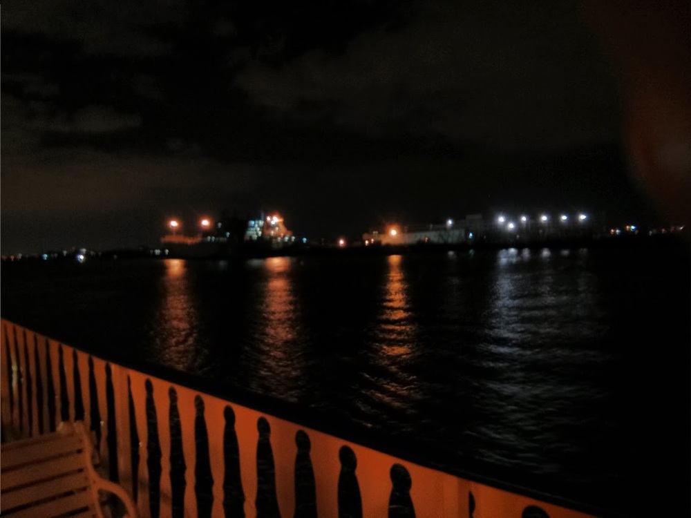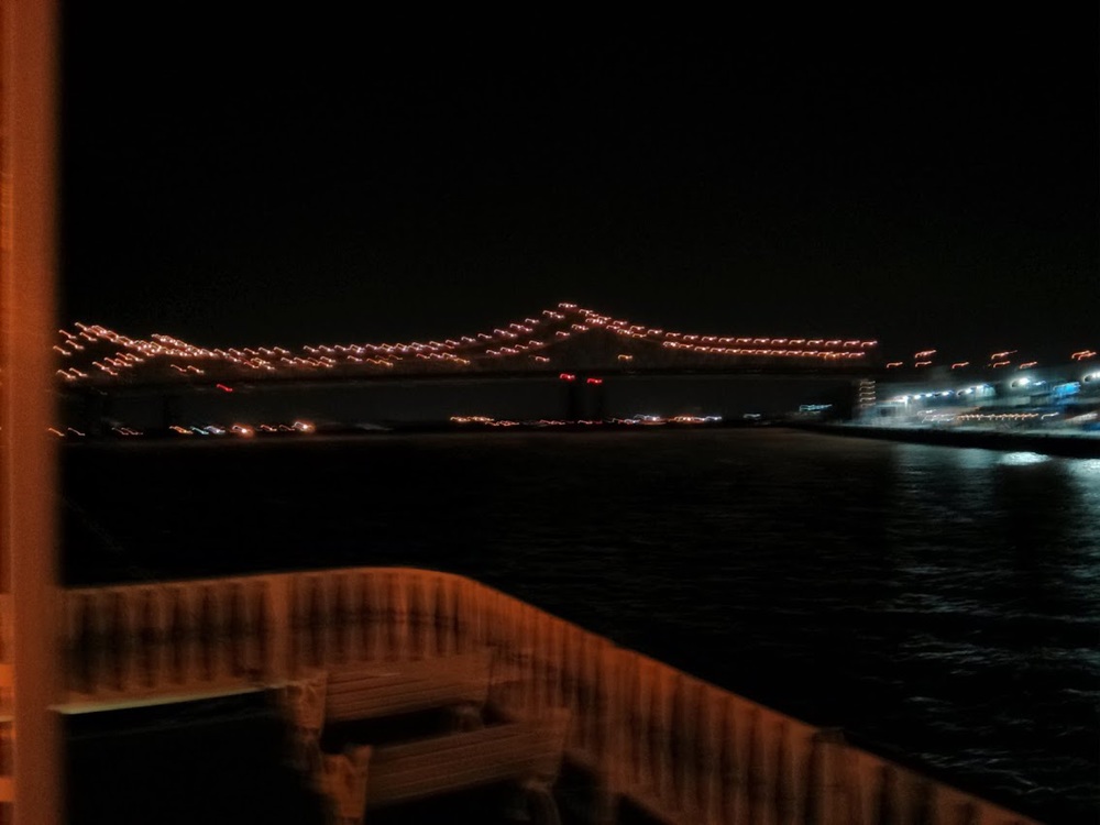 I just stood up there and watched the city move away and watched the industrial stuff that lines that shore pass by. Good thing I went on a night cruise; seeing city lights at night is one of my favorite scenes, and it made the industrial stuff much nicer to look at, too.