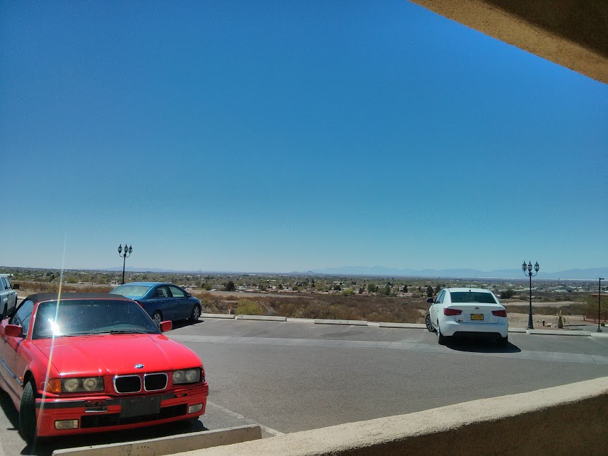 Went to a coffee shop, appropriately named Plateau Espresso, and spent the workday there, out on the patio for most of the afternoon. Great scenery overlooking Alamogordo, and the desert and mountain ranges beyond.